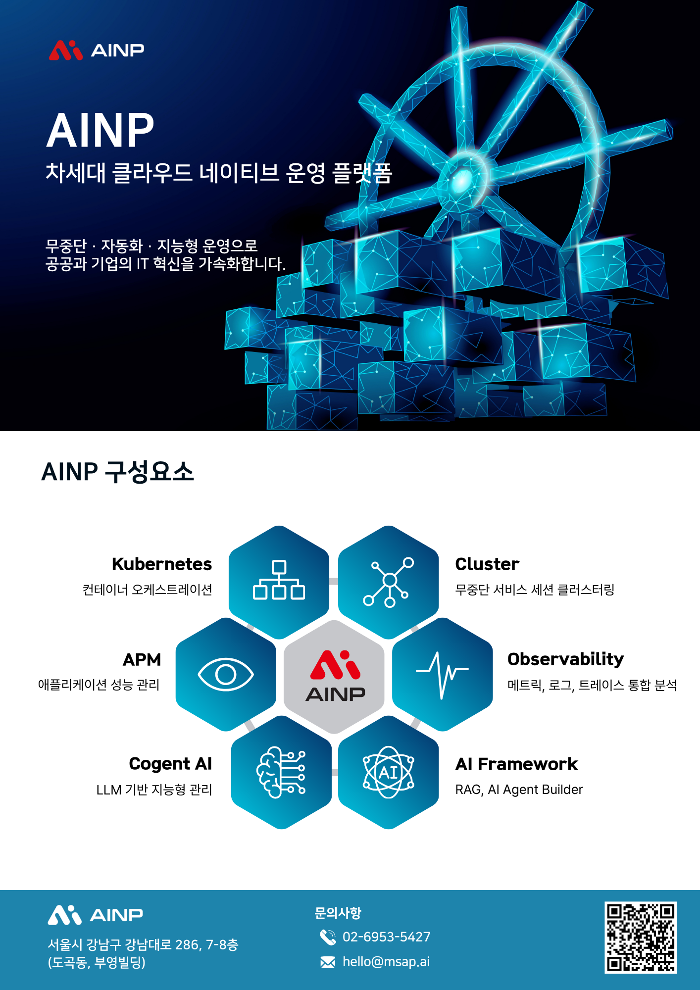 AINP는 Kubernetes 환경에 최적화된 핵심 운영 기능들을 단 하나의 플랫폼에서 완벽하게 통합하여,