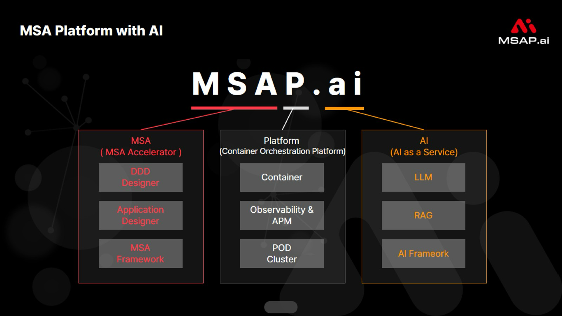 MSAP.ai 는 기존 Legacy 애플리케이션의 현대화, Cloud Native 애플리케이션의 개발 및 운영 그리고 AI Native 애플리케이션 구축을 지원하는 통합 플랫폼입니다. 소개자료를 통해 자세히 알아보세요